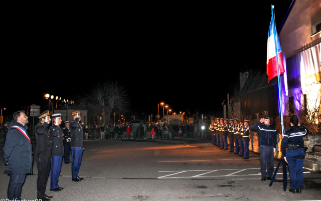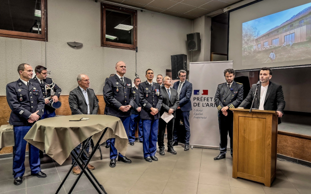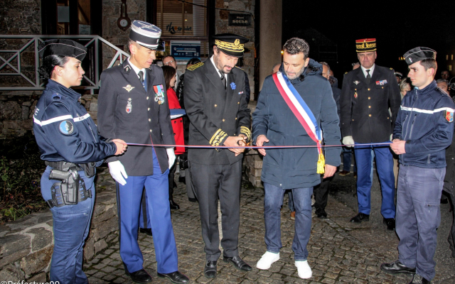 Inauguration de la nouvelle brigade territoriale mobile de l’Hospitalet-près-l’Andorre en présence du préfet de l’Ariège Simon Bertoux, du général Arnaud Girault commandant en second de la région Gendarmerie nationale Occitanie, du colonel Frédéric Wagner Gendarmerie de l’Ariège, du procureur de la République Olivier Mouysset, de la ministre de la justice et de l’Intérieur de la principauté d’Andorre Ester Molné Soldevila, des élus, des représentants des forces de sécurité, de France, Andorre et Espagne, et des Hospitalois, accueillis par le maire de la commune Arnaud Diaz.